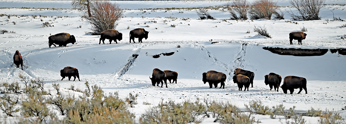 “We had gotten everything arranged as best we could. I had our supper spread out on the buffalo grass inside the tent. All hands were settling themselves on the grass around the spread. Everyone hungry enough to eat a piece of coyote, and everybody discussing what our predicament would be the next morning. No one in that crowd however, was a prophet, as the reader will soon learn. It was getting dark. All hands were busy eating when the storm broke, but not a snow storm. We were stormed by buffalo. I, being on my feet and the nearest to the opening of the tent, shot outside first. I don’t think anyone ever came any nearer running right into a live buffalo than I did; for not over thirty feet from that tent was a monstrous bull buffalo. I stopped so sudden it is a wonder that I didn’t tear my shoe heels off. I hollered and if the reader had seen what I saw he would have hollered, too. The bull was moving, my appearance and the noise I made quickened his pace a little. The balance of the boys ran out, and, to our consternation, there were buffalo by the hundred. Buffalo all about us – buffalo everywhere. The draw was black with them as far north as we could see.
