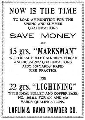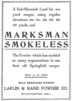 The hot nitroglycerine-based powders of the day were partially responsible for the disappointing performance of the Ideal bullets the Cypress Hills group had tried. The searing ignition of Sharpshooter, Infallible, and Lightning torched past the bullet’s base and left a trail of alloy along the length of the bore. Cleaning the rifle at the end of a day’s shooting was a ritual of bristling out shiny streaks and flakes of lead. This handicap was mostly eliminated with the release of DuPont No. 80 in 1913.